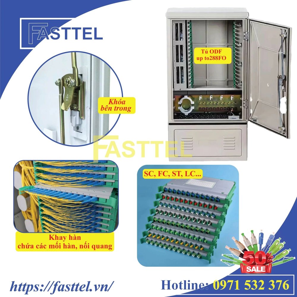 Tủ phối quang ODF ngoài trời 288FO dạng bệ chính hãng được đánh giá cao và sử dụng rộng rãi trong nhiều lĩnh vực khác nhau. Chỉ cần đặt mua ngay tại website Fasttel hoặc gọi điện cho nhân viên tư vấn báo giá măng xông quang, bạn sẽ được hỗ trợ giao hàng 24/7 toàn quốc. Ngoài ra, sản phẩm cũng đã có giấy đăng ký và chứng minh, đảm bảo chính hãng và được bảo hành đầy đủ.